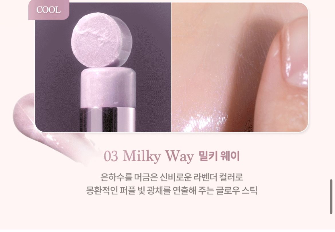 Una barra luminosa con un suave brillo similar al de la Vía Láctea que se funde de forma transparente en la piel, creando un resplandor deslumbrante.